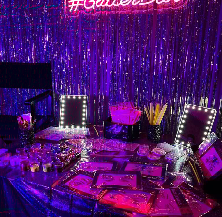 Dale brillo a tu evento con el mejor Glitter Bar en Barcelona. Maquillaje de fantasía, purpurina biodegradable y gemas para una fiesta inolvidable. ¡Reserva ahora!