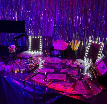 Maquillaje, peinados, Glitter bar y Live Art