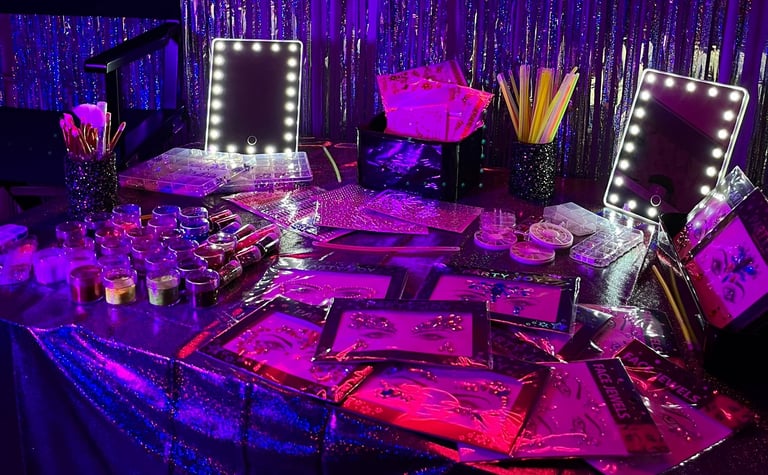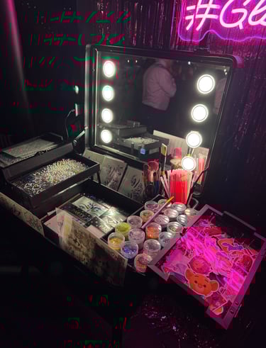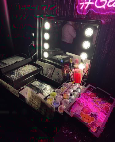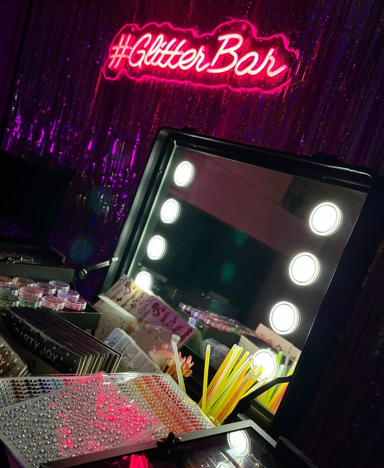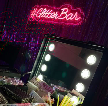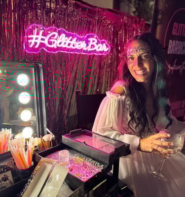 En Glitter Bar BCN, ofrecemos un stand único con brillo, glitter y piedras decorativas para hacer relucir tu evento. Ofrecemos opción de maletín o mesa. Siempre te acompañaremos con nuestra maquilladora/as.